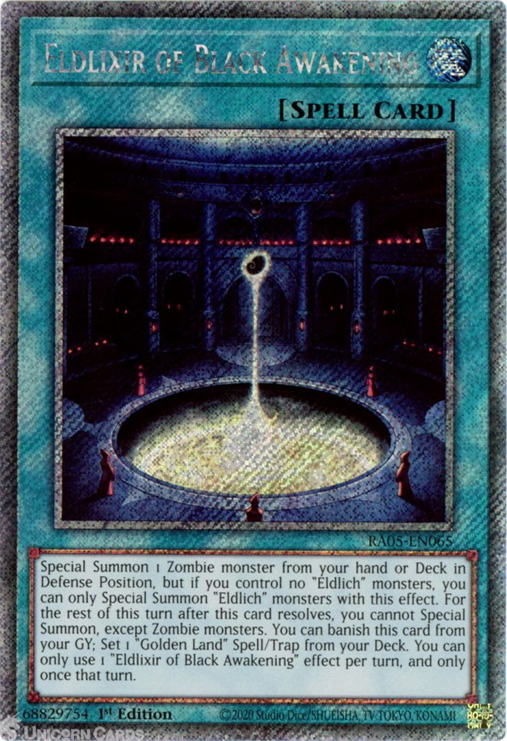 - RA05-EN065 Eldlixir of Black Awakening : Platinum Secret Rare 1st Edition Mint YuGiOh Card