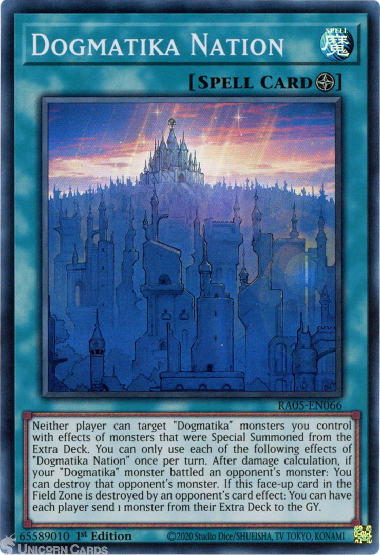 - RA05-EN066 Dogmatika Nation : Super Rare 1st Edition Mint YuGiOh Card