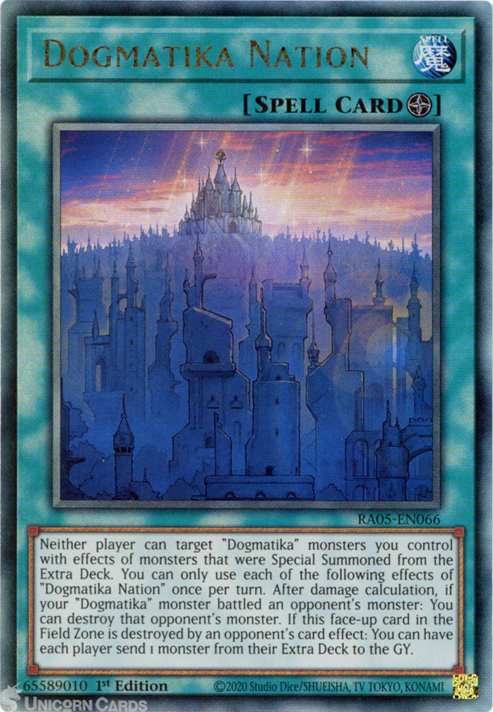 - RA05-EN066 Dogmatika Nation : Ultimate Rare 1st Edition Mint YuGiOh Card