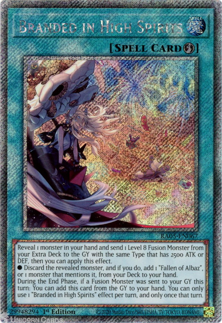 - RA05-EN067 Branded in High Spirits : Platinum Secret Rare 1st Edition Mint YuGiOh Card