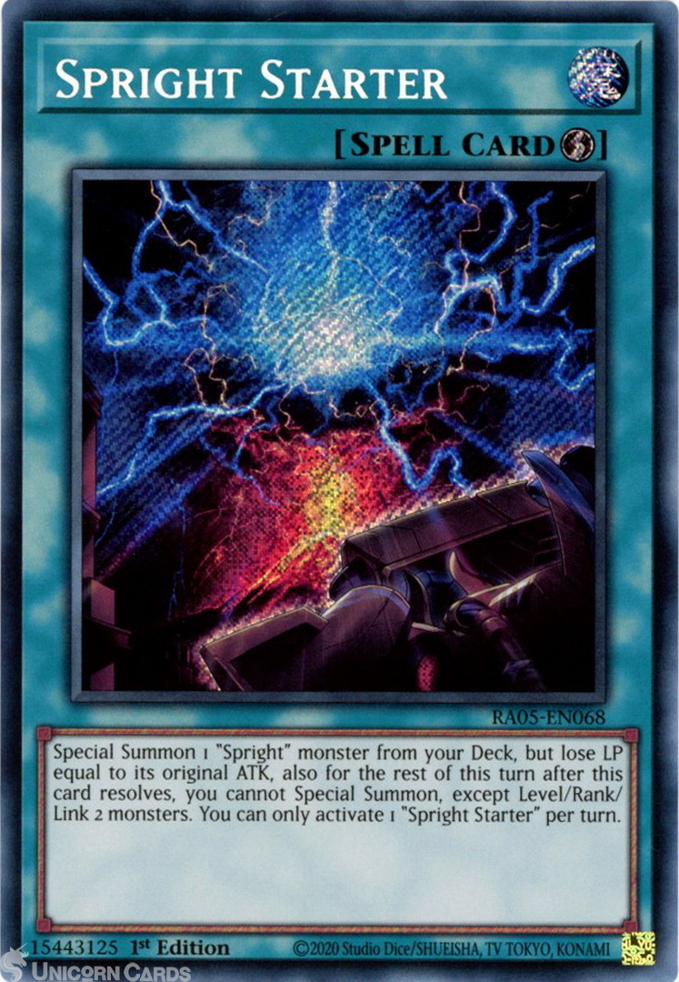 - RA05-EN068 Spright Starter : Secret Rare 1st Edition Mint YuGiOh Card