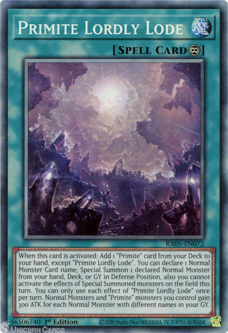 - RA05-EN072 Primite Lordly Lode : Collector's Rare 1st Edition Mint YuGiOh Card