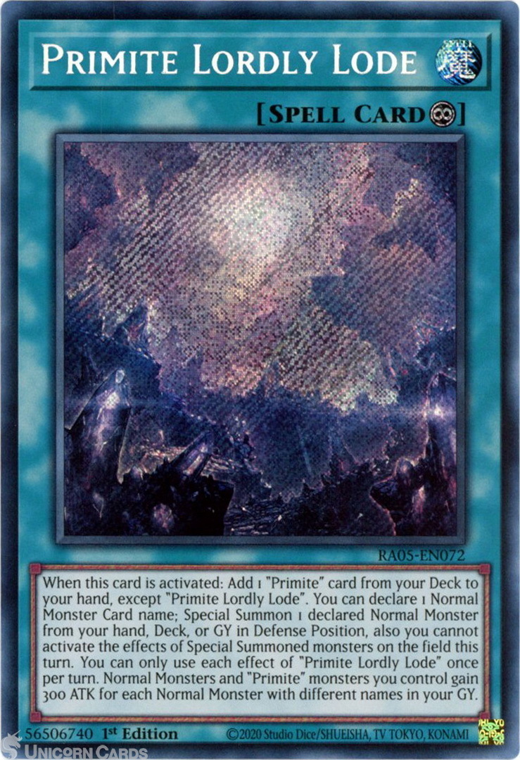 - RA05-EN072 Primite Lordly Lode : Secret Rare 1st Edition Mint YuGiOh Card