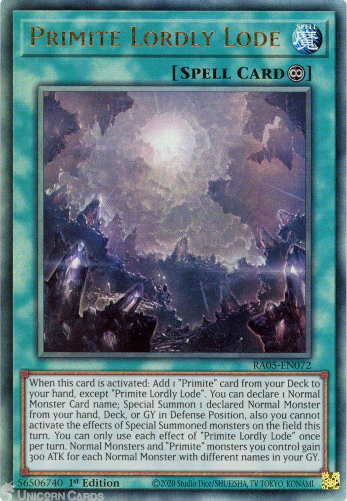 - RA05-EN072 Primite Lordly Lode : Ultimate Rare 1st Edition Mint YuGiOh Card