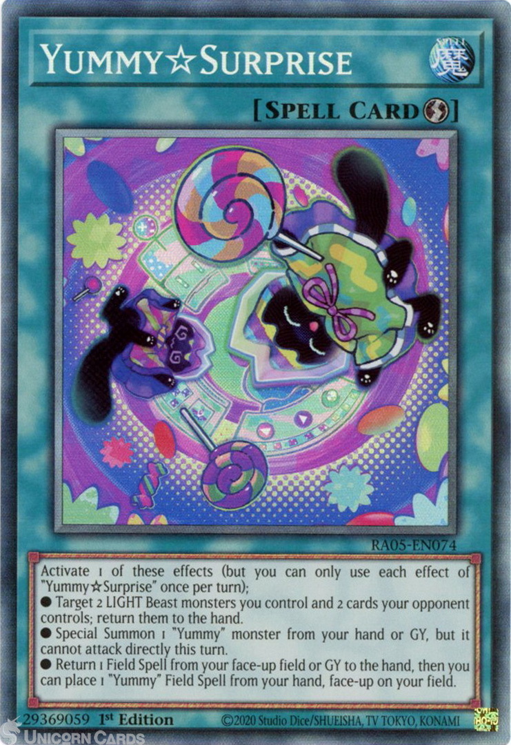 - RA05-EN074 Yummy☆Surprise : Collector's Rare 1st Edition Mint YuGiOh Card