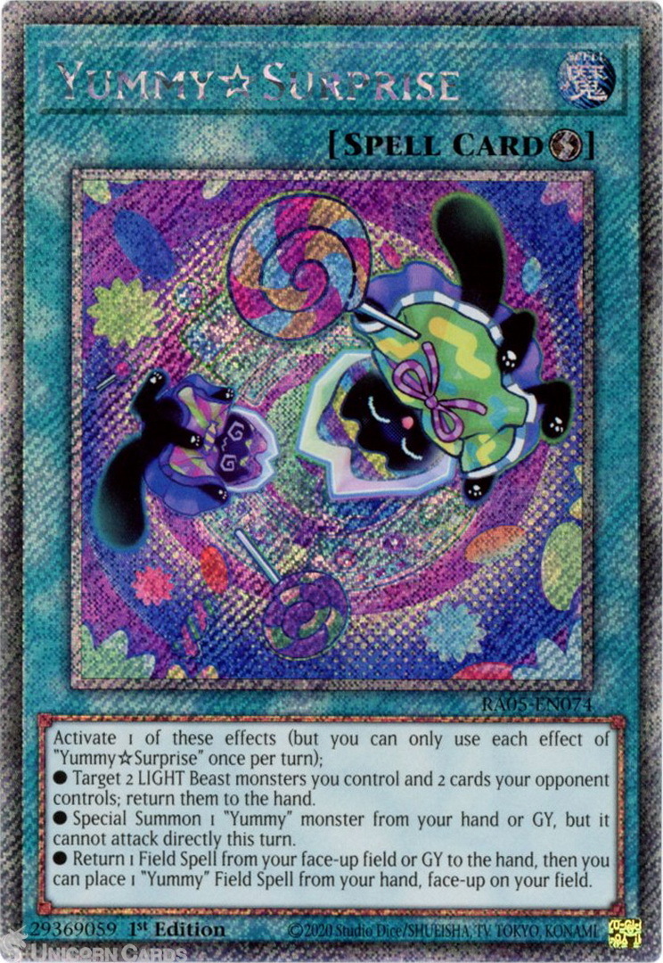 - RA05-EN074 Yummy☆Surprise : Platinum Secret Rare 1st Edition Mint YuGiOh Card