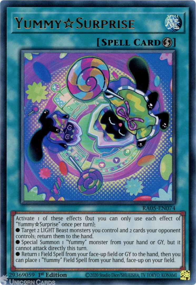 - RA05-EN074 Yummy☆Surprise : Ultra Rare 1st Edition Mint YuGiOh Card