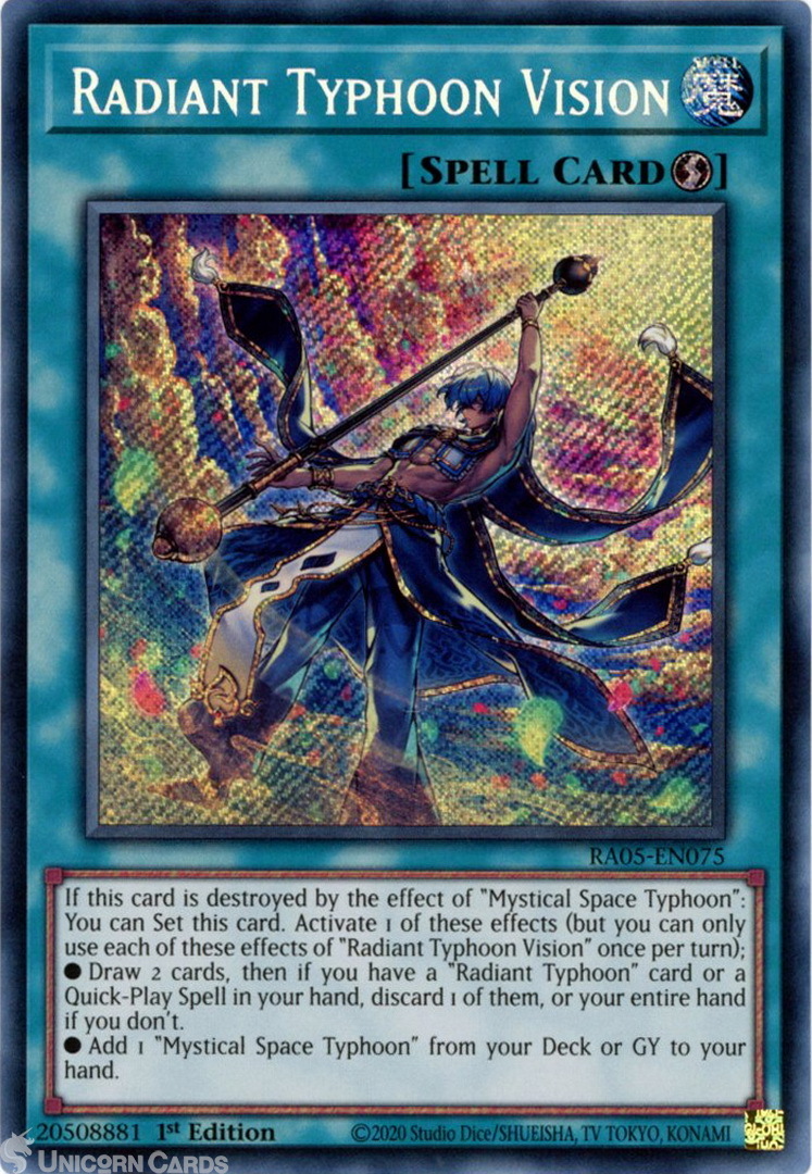 - RA05-EN075 Radiant Typhoon Vision : Secret Rare 1st Edition Mint YuGiOh Card