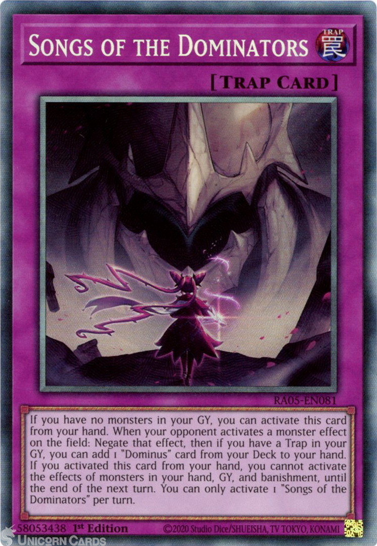 - RA05-EN081 Songs of the Dominators : Collector's Rare 1st Edition Mint YuGiOh Card
