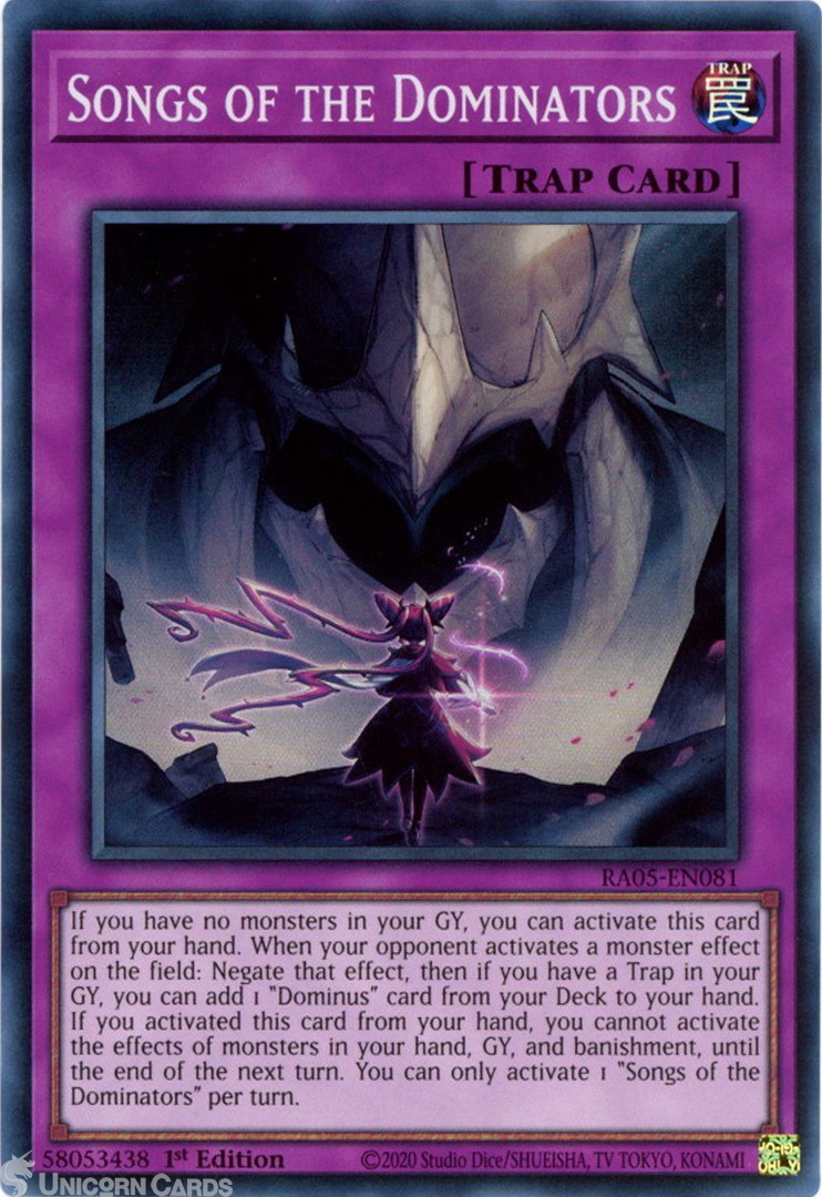 - RA05-EN081 Songs of the Dominators : Super Rare 1st Edition Mint YuGiOh Card