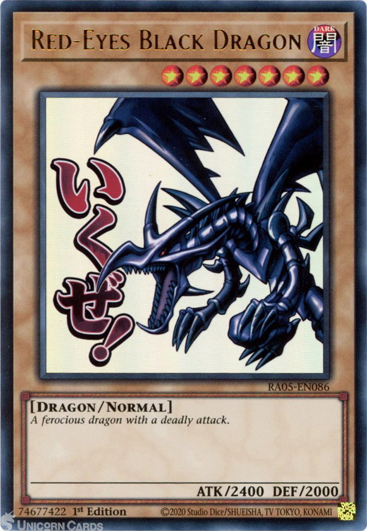 - RA05-EN086 Red-Eyes Black Dragon (Stamp Artwork) : Ultra Rare 1st Edition Mint YuGiOh Card