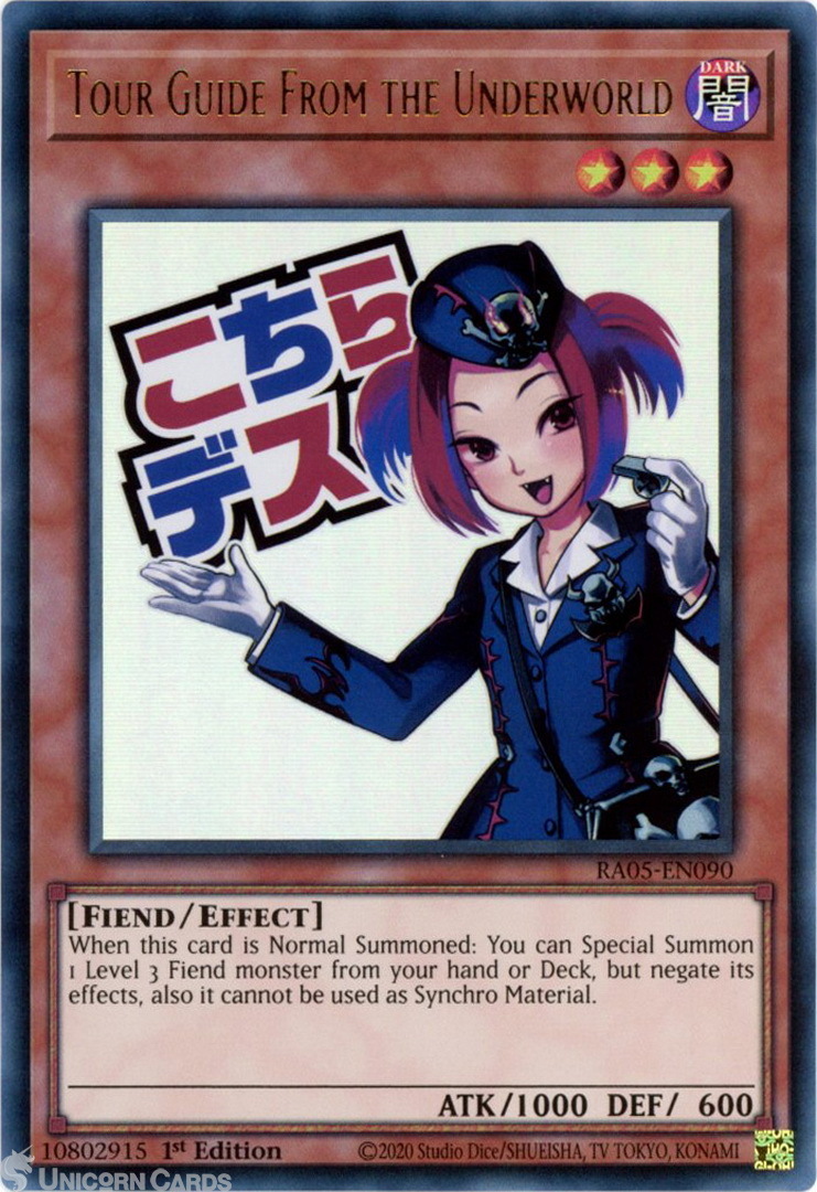 - RA05-EN090 Tour Guide From the Underworld (Stamp Artwork) : Ultra Rare 1st Edition Mint YuGiOh Card