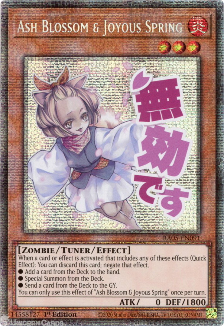 - RA05-EN091 Ash Blossom & Joyous Spring (Stamp Artwork) : Starlight Rare 1st Edition Mint YuGiOh Card