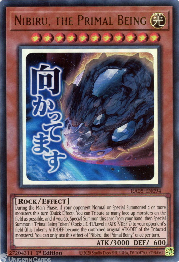 - RA05-EN094 Nibiru, the Primal Being (Stamp Artwork) : Ultra Rare 1st Edition Mint YuGiOh Card