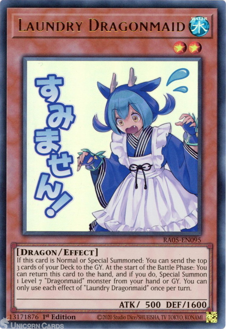 - RA05-EN095 Laundry Dragonmaid (Stamp Artwork) : Ultra Rare 1st Edition Mint YuGiOh Card