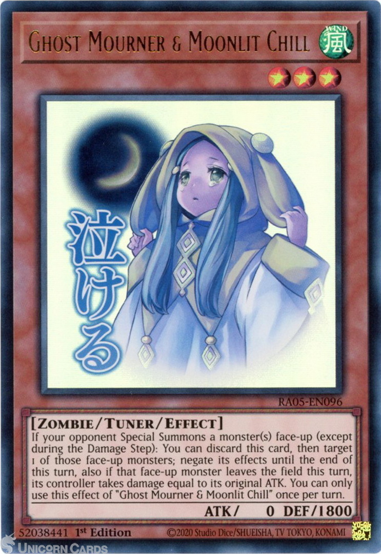 - RA05-EN096 Ghost Mourner & Moonlit Chill (Stamp Artwork) : Ultra Rare 1st Edition Mint YuGiOh Card