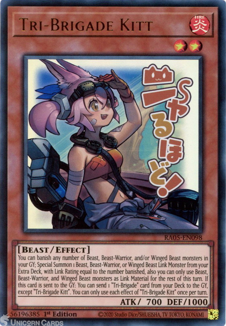- RA05-EN098 Tri-Brigade Kitt (Stamp Artwork) : Ultra Rare 1st Edition Mint YuGiOh Card