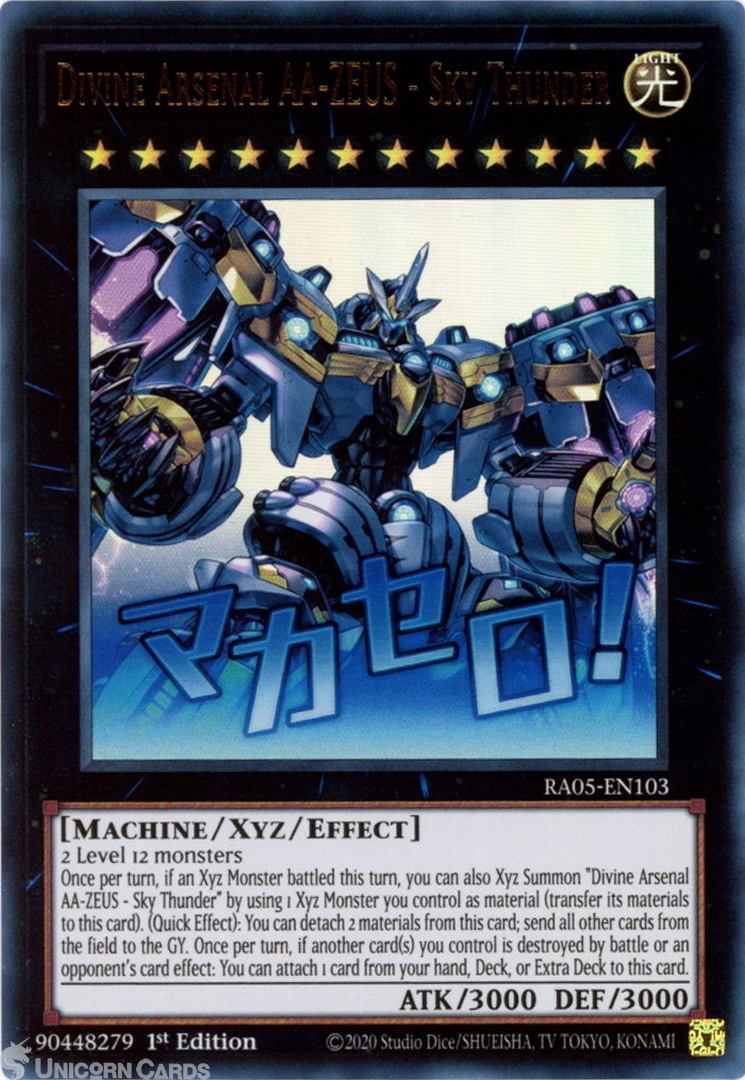 - RA05-EN103 Divine Arsenal AA-ZEUS - Sky Thunder (Stamp Artwork) : Ultra Rare 1st Edition Mint YuGiOh Card