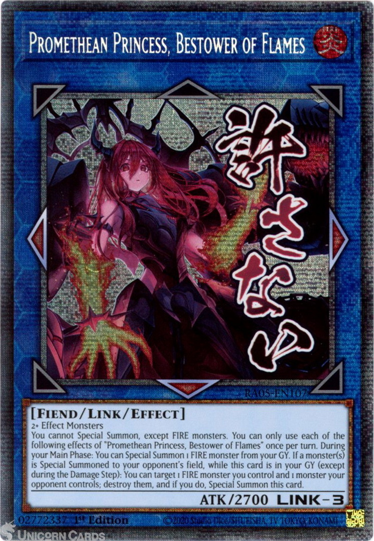 - RA05-EN107 Promethean Princess, Bestower of Flames (Stamp Artwork) : Starlight Rare 1st Edition Mint YuGiOh Card