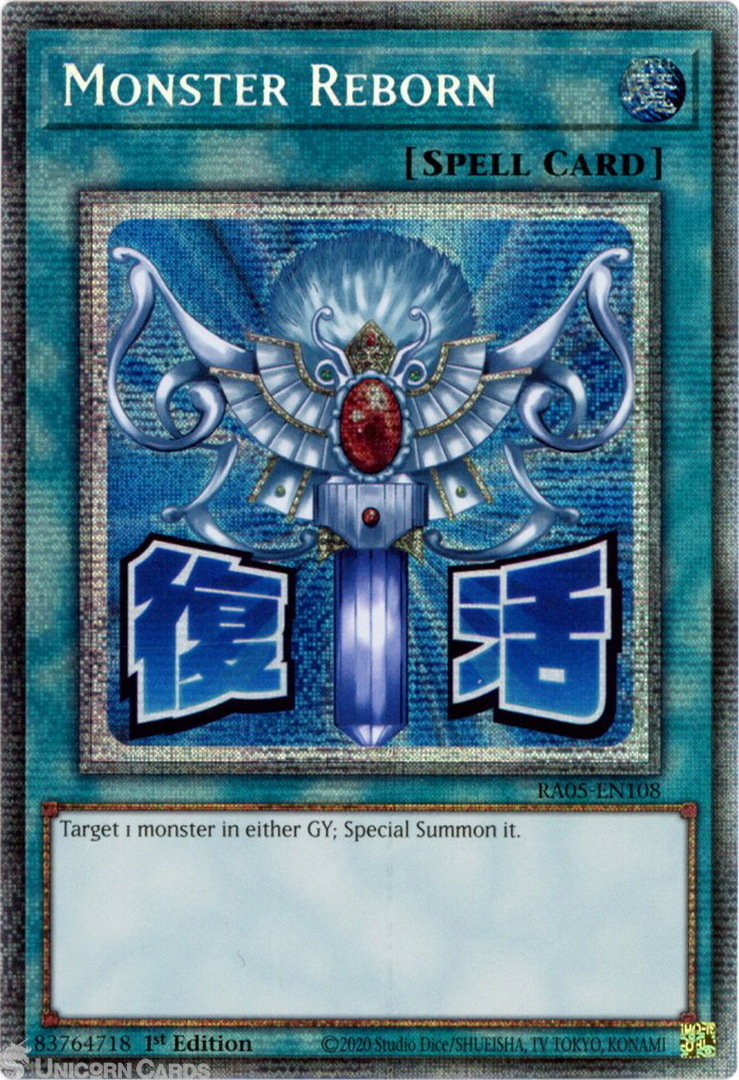 - RA05-EN108 Monster Reborn (Stamp Artwork) : Starlight Rare 1st Edition Mint YuGiOh Card