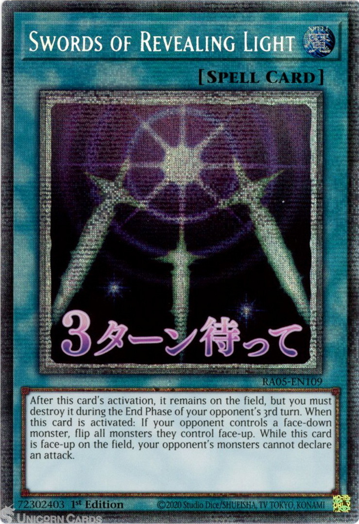 - RA05-EN109 Swords of Revealing Light (Stamp Artwork) : Starlight Rare 1st Edition Mint YuGiOh Card