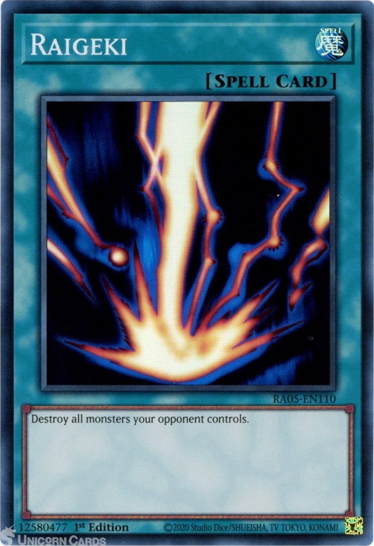 - RA05-EN110 Raigeki : Super Rare 1st Edition Mint YuGiOh Card