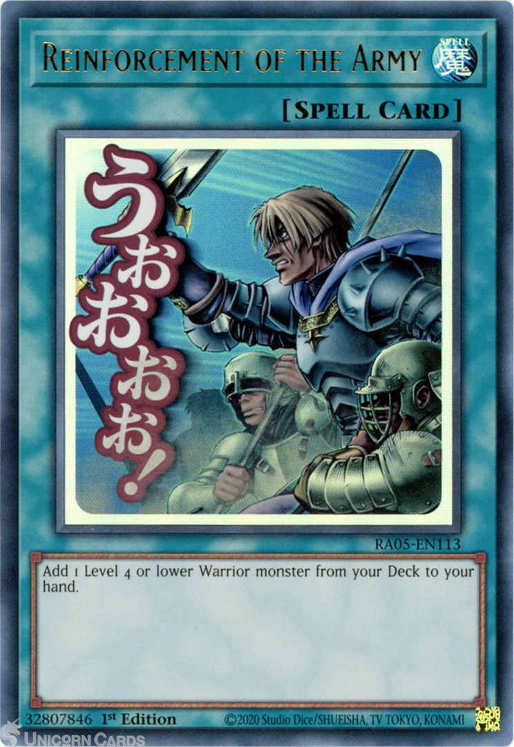 - RA05-EN113 Reinforcement of the Army (Stamp Artwork) : Ultra Rare 1st Edition Mint YuGiOh Card