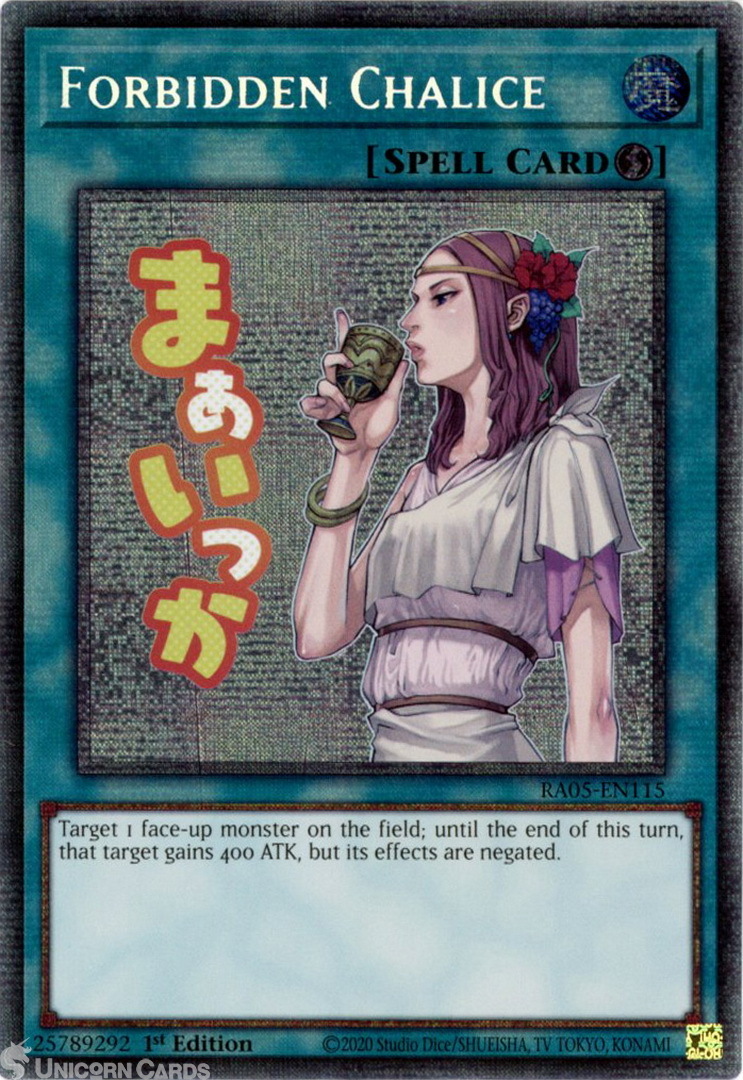 - RA05-EN115 Forbidden Chalice (Stamp Artwork) : Starlight Rare 1st Edition Mint YuGiOh Card