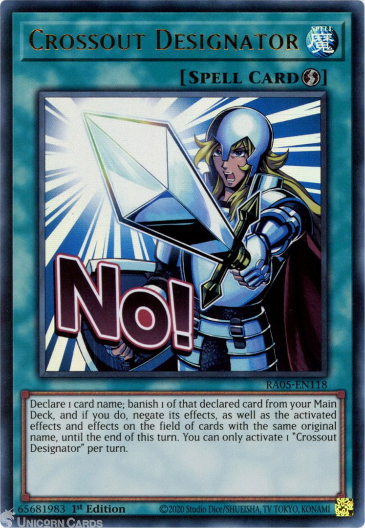 - RA05-EN118 Crossout Designator (Stamp Artwork) : Ultra Rare 1st Edition Mint YuGiOh Card