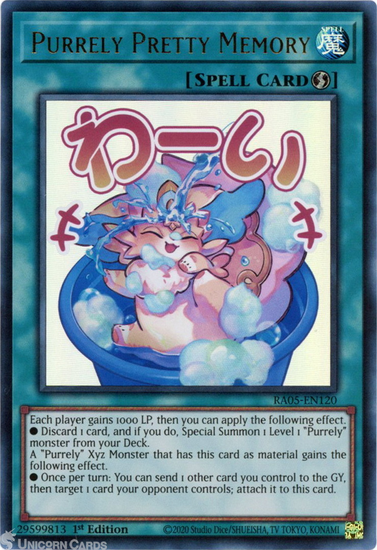- RA05-EN120 Purrely Pretty Memory (Stamp Artwork) : Ultra Rare 1st Edition Mint YuGiOh Card