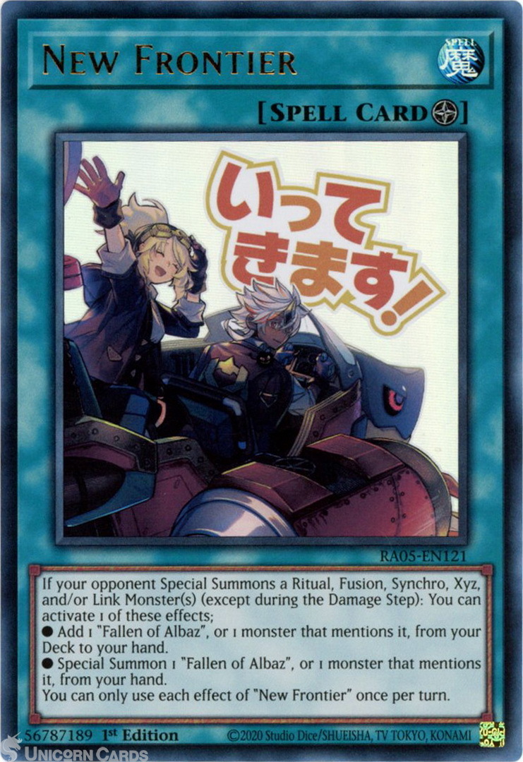 - RA05-EN121 New Frontier (Stamp Artwork) : Ultra Rare 1st Edition Mint YuGiOh Card