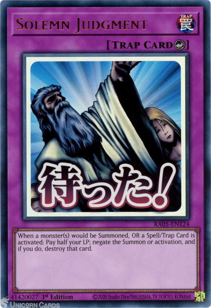 - RA05-EN124 Solemn Judgment (Stamp Artwork) : Ultra Rare 1st Edition Mint YuGiOh Card