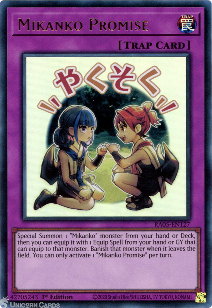 - RA05-EN127 Mikanko Promise (Stamp Artwork) : Ultra Rare 1st Edition Mint YuGiOh Card