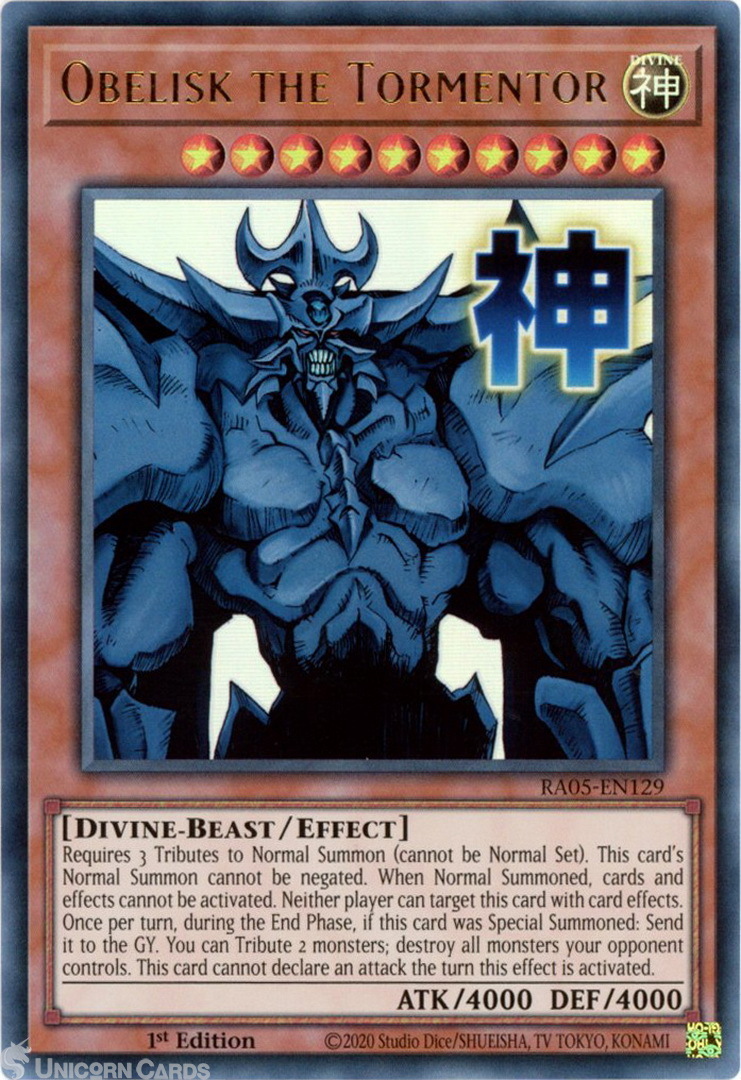 - RA05-EN129 Obelisk the Tormentor (Stamp Artwork) : Ultra Rare 1st Edition Mint YuGiOh Card