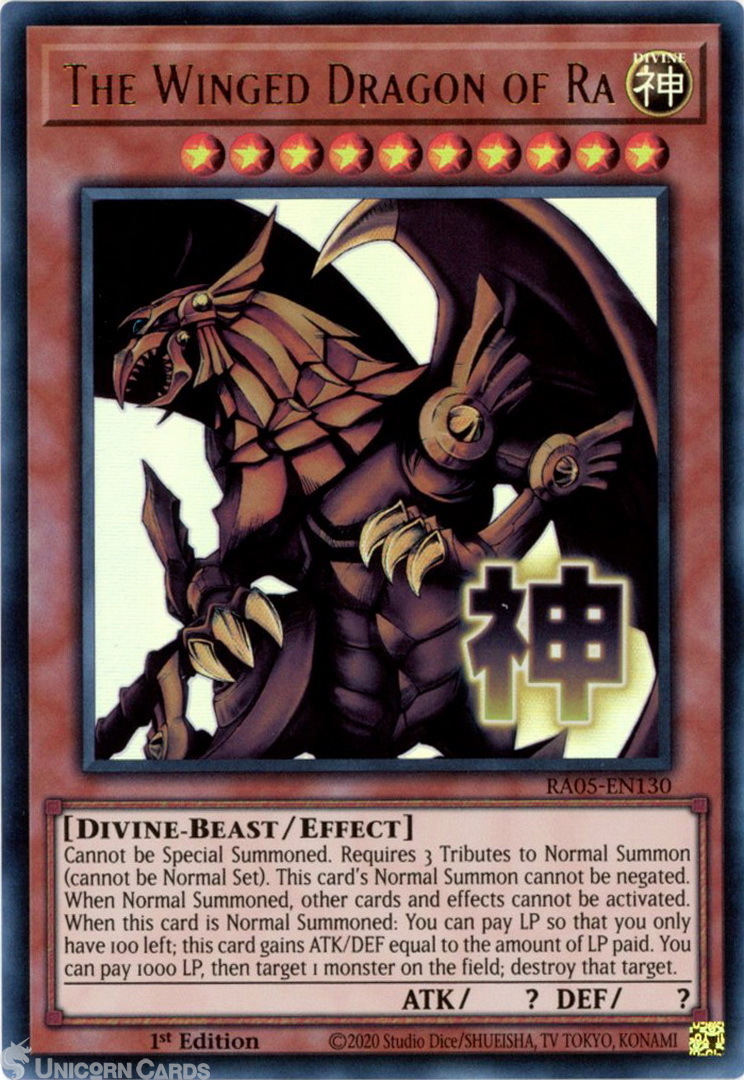 - RA05-EN130 The Winged Dragon of Ra (Stamp Artwork) : Ultra Rare 1st Edition Mint YuGiOh Card