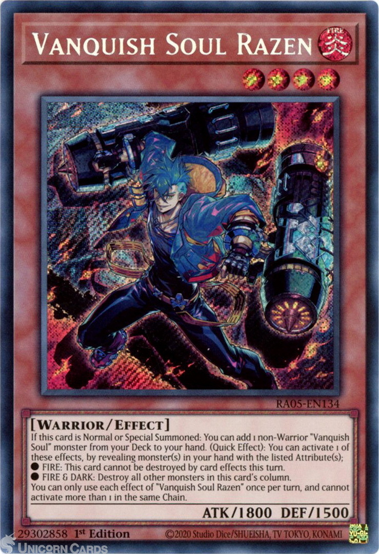 - RA05-EN134 Vanquish Soul Razen : Secret Rare 1st Edition Mint YuGiOh Card