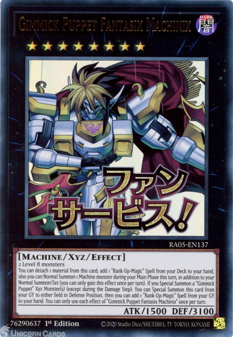 - RA05-EN137 Gimmick Puppet Fantasix Machinix (Stamp Artwork) : Ultra Rare 1st Edition Mint YuGiOh Card