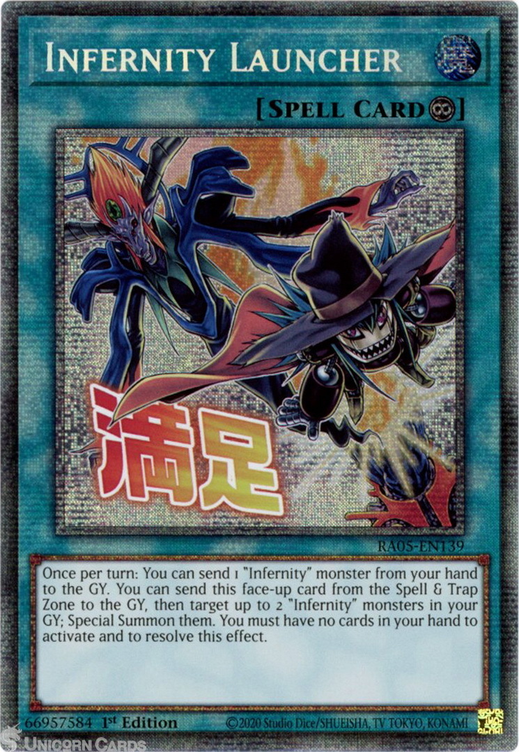 - RA05-EN139 Infernity Launcher (Stamp Artwork) : Starlight Rare 1st Edition Mint YuGiOh Card