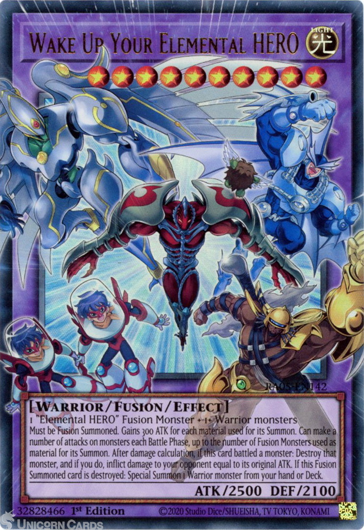 - RA05-EN142 Wake Up Your Elemental HERO (Extended Art) : Ultra Rare 1st Edition Mint YuGiOh Card