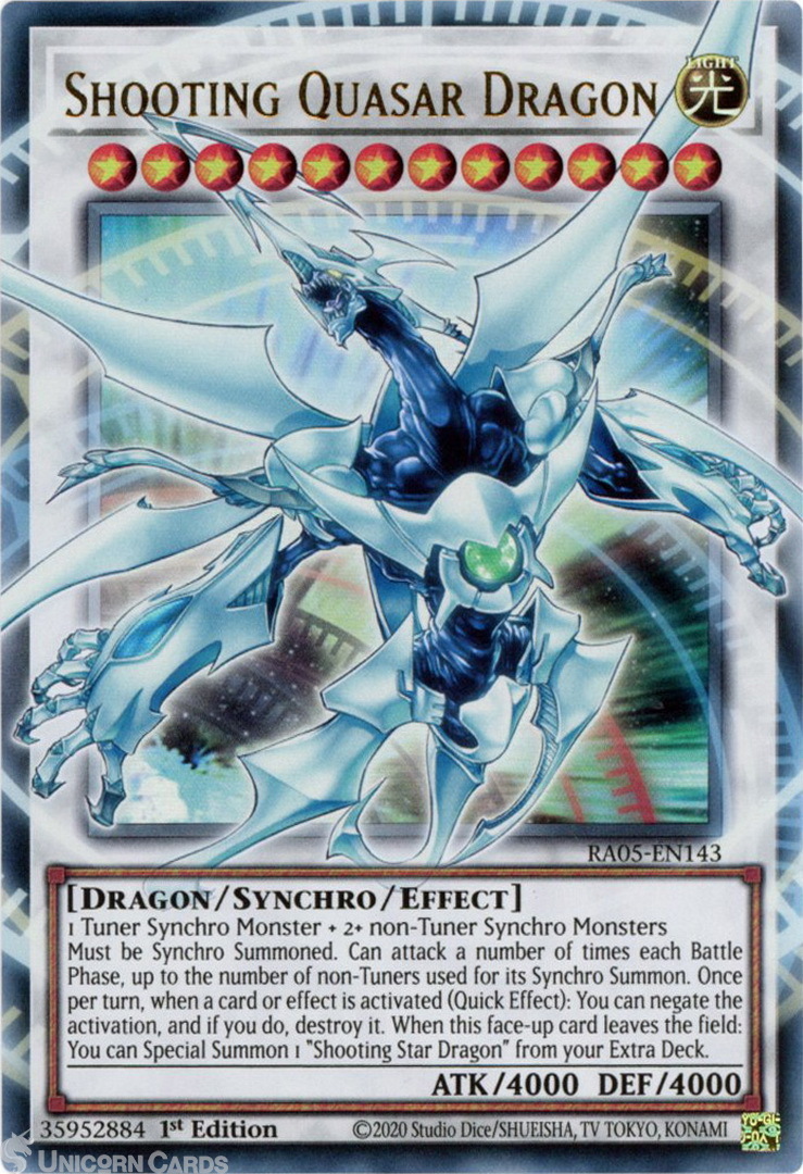 - RA05-EN143 Shooting Quasar Dragon (Extended Art) : Ultra Rare 1st Edition Mint YuGiOh Card