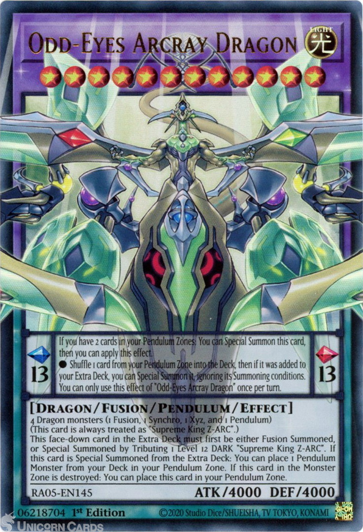 - RA05-EN145 Odd-Eyes Arcray Dragon (Extended Art) : Ultra Rare 1st Edition Mint YuGiOh Card