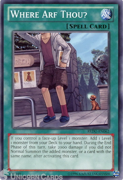 - REDU-EN062 Where Arf Thou? Common UNL Edition Mint YuGiOh Card