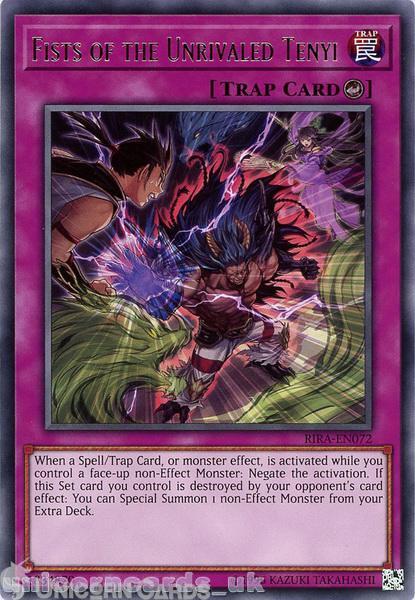 - RIRA-EN072 Fists of the Unrivaled Tenyi Rare UNL Edition Mint YuGiOh Card