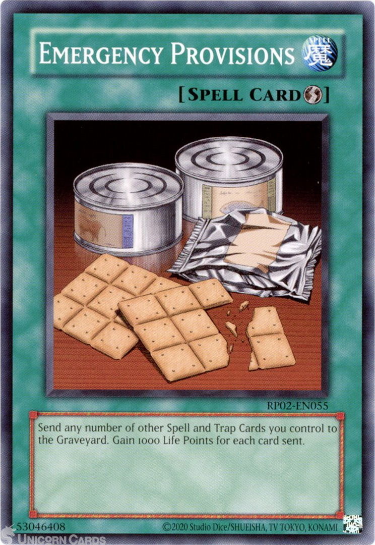 - RP02-EN055 Emergency Provisions : Common RP02: Retro Pack 2 UNL Edition Mint YuGiOh Card