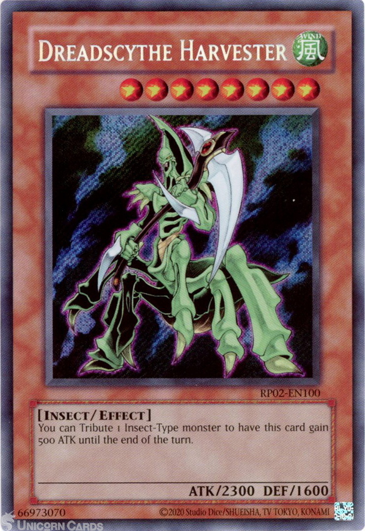 - RP02-EN100 Dreadscythe Harvester : Secret Rare RP02: Retro Pack 2 UNL Edition Mint YuGiOh Card