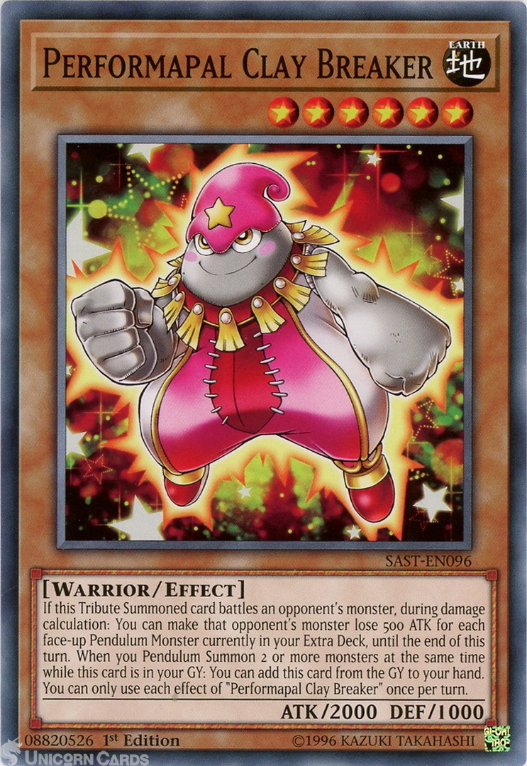 - SAST-EN096 Performapal Clay Breaker Common 1st Edition Mint YuGiOh Card