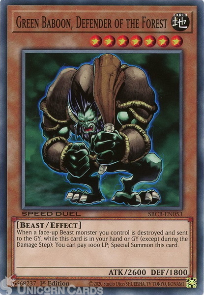 - SBCB-EN053 Green Baboon, Defender of the Forest Common 1st Edition Mint YuGiOh Card