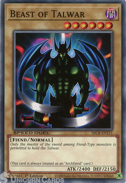 - SBCB-EN111 Beast of Talwar Common 1st Edition Mint YuGiOh Card