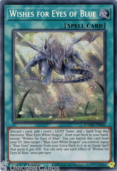 - SDWD-EN042 Wishes for Eyes of Blue : Secret Rare 1st Edition Mint YuGiOh Card