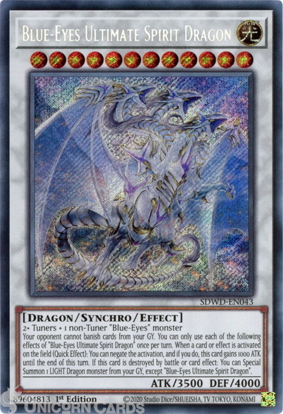 - SDWD-EN043 Blue-Eyes Ultimate Spirit Dragon : Secret Rare 1st Edition Mint YuGiOh Card